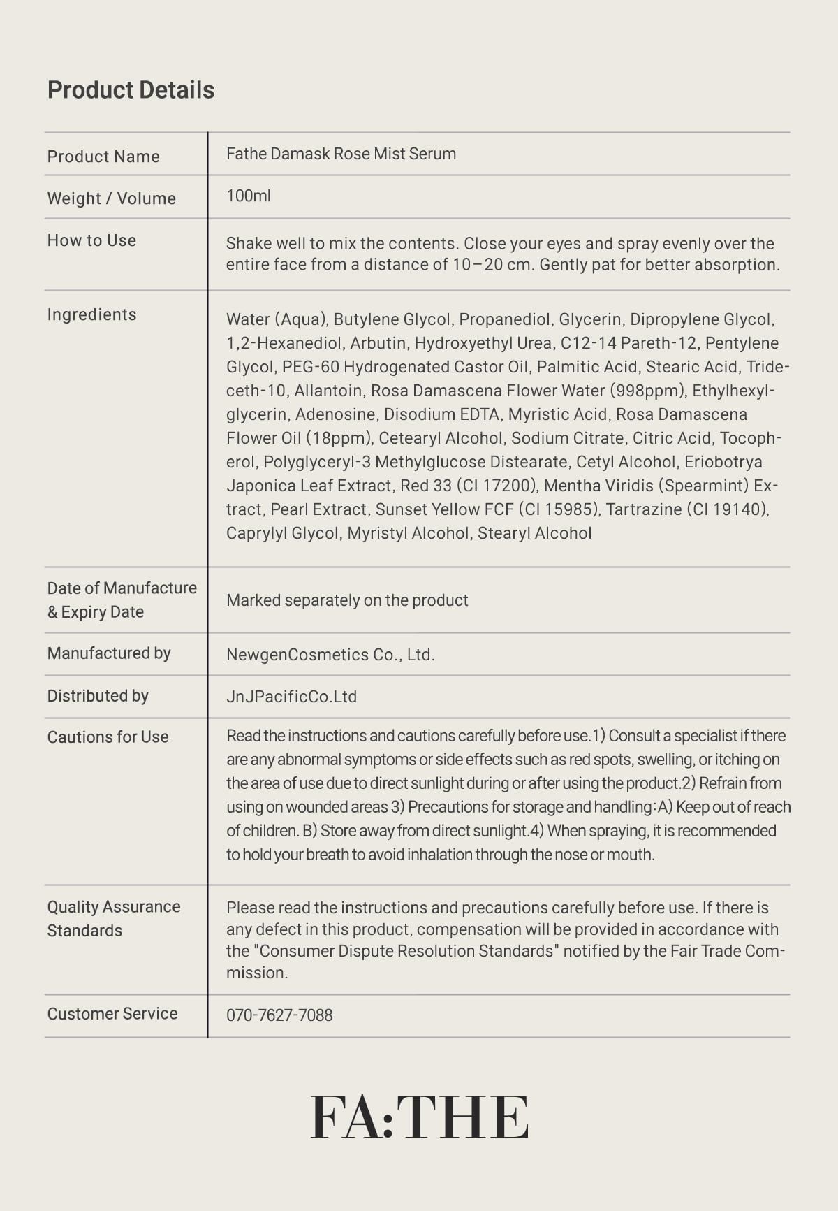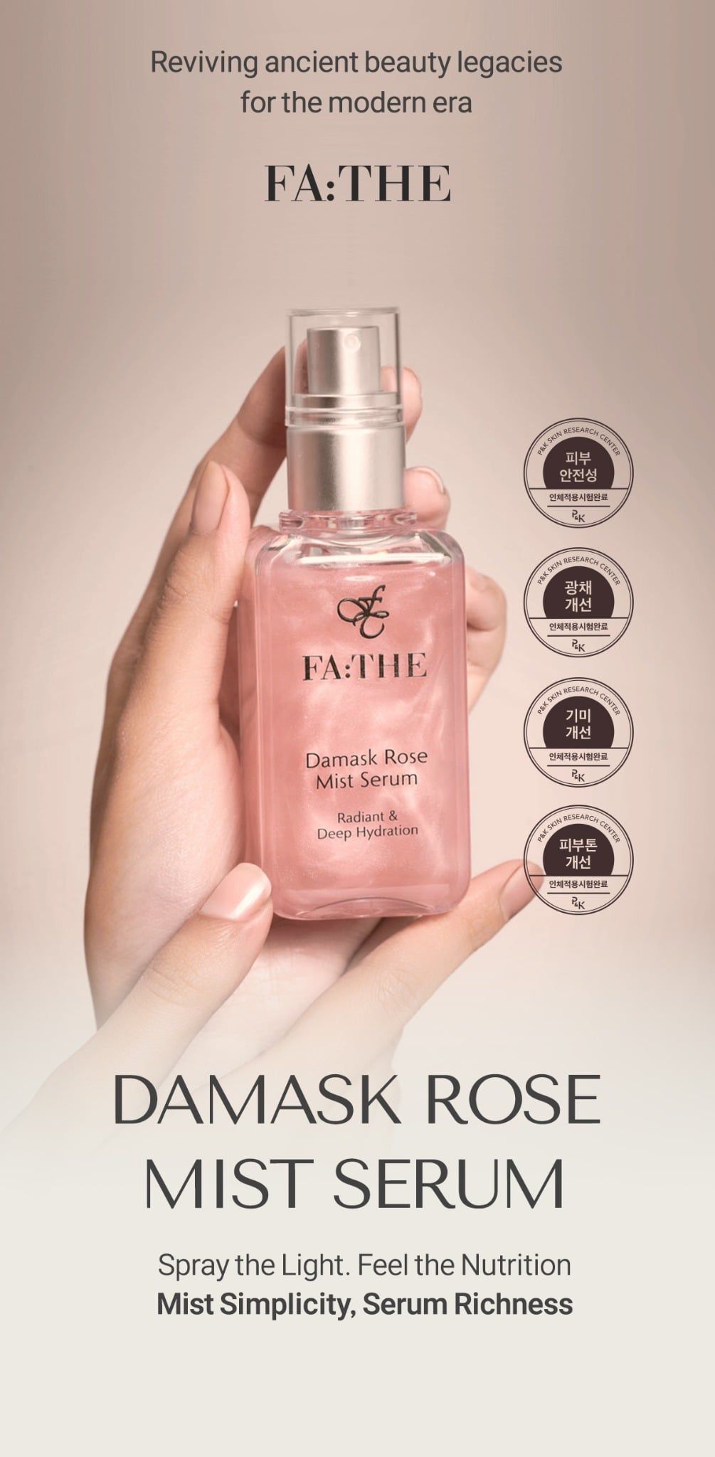 FA:THE – là thương hiệu làm đẹp cao cấp hiện đại hóa "Di sản vẻ đẹp" được kế thừa từ hàng nghìn năm trước. Từ liệu pháp xông hoa hồng của hoàng tộc La Mã, tắm hoa hồng của Cleopatra, đến phương pháp rửa mặt bằng nước hoa hồng của phụ nữ triều đại Joseon...